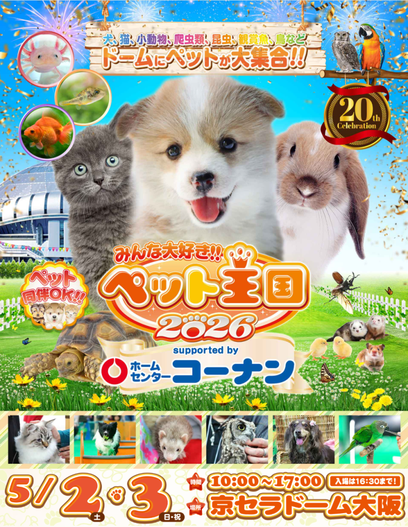【5/2(土)・5/3(日・祝)】みんな大好き!! ペット王国2026|大阪・西区≫
