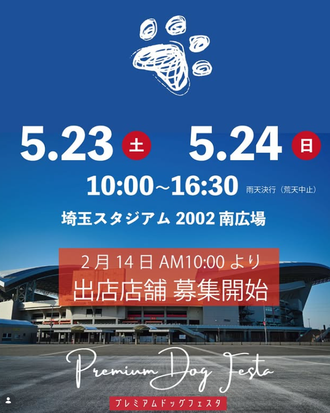 | プレミアムドッグフェスタ in埼玉スタジアム2002 | 埼玉スタジアム2002南広場 | 東北自動車道 「浦和IC」 | 屋外 | ★★★★☆ | 公式HP「dogfes」 | |